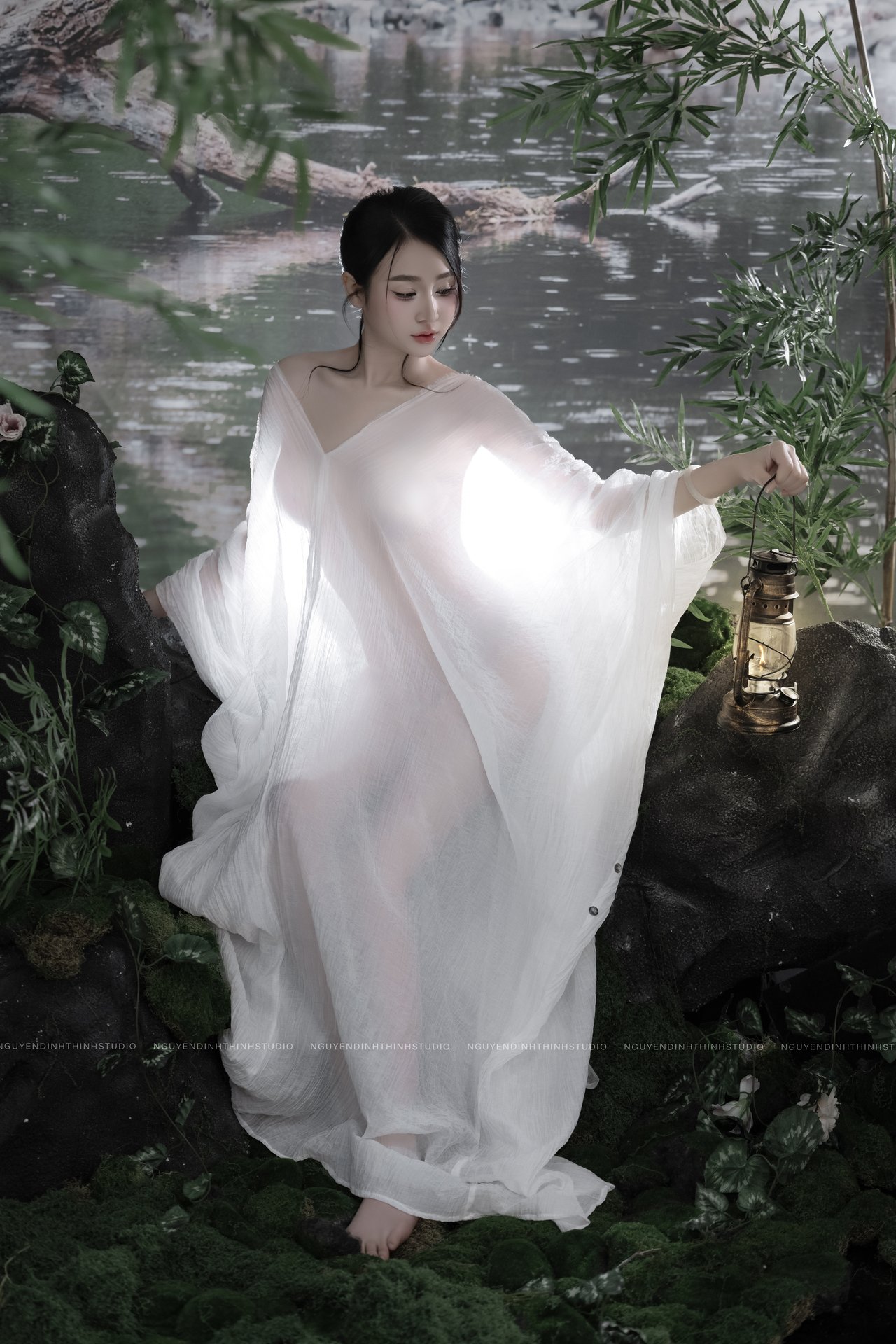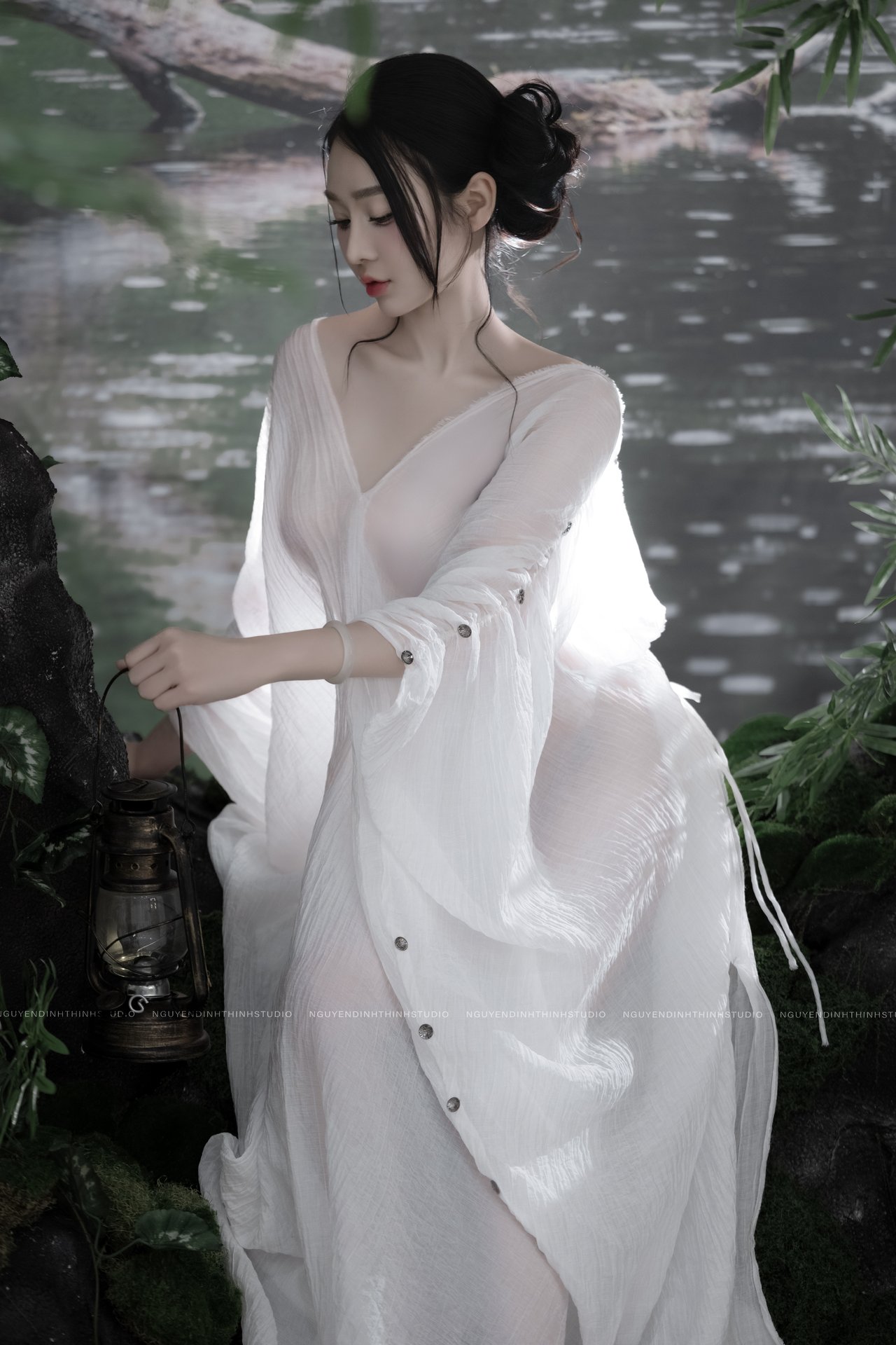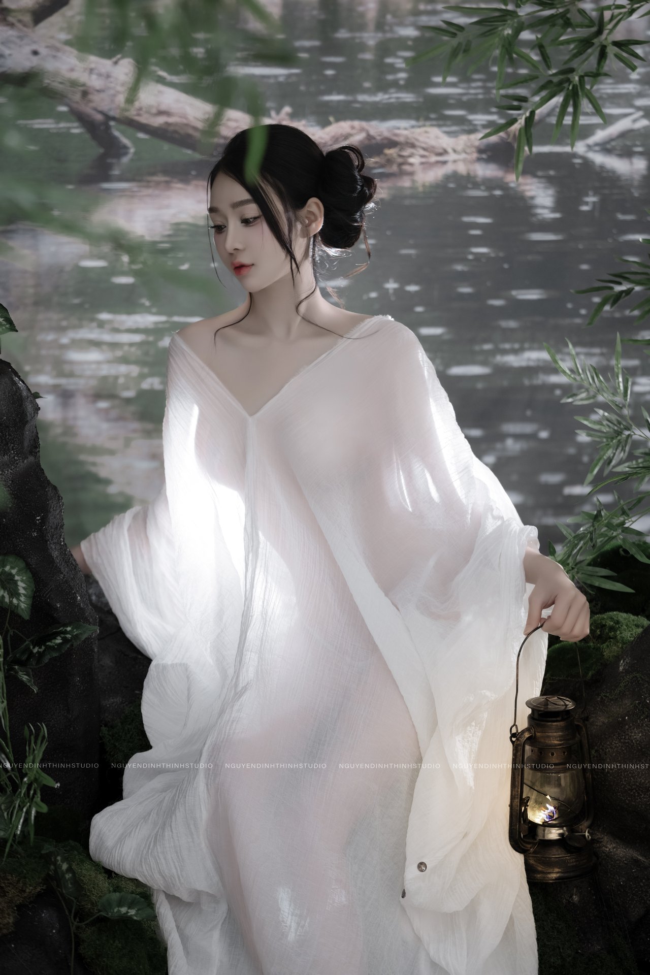 bộ ảnh sexy nhưng không quá sexy thực hiện bối cảnh phục dựng tại studio kết hợp hiệu ứng AI thông minh xu hướng năm 2025-2026.